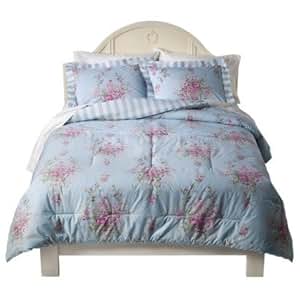 Simply shabby chic twin bed comforter set pretty blue floral 2 piece.